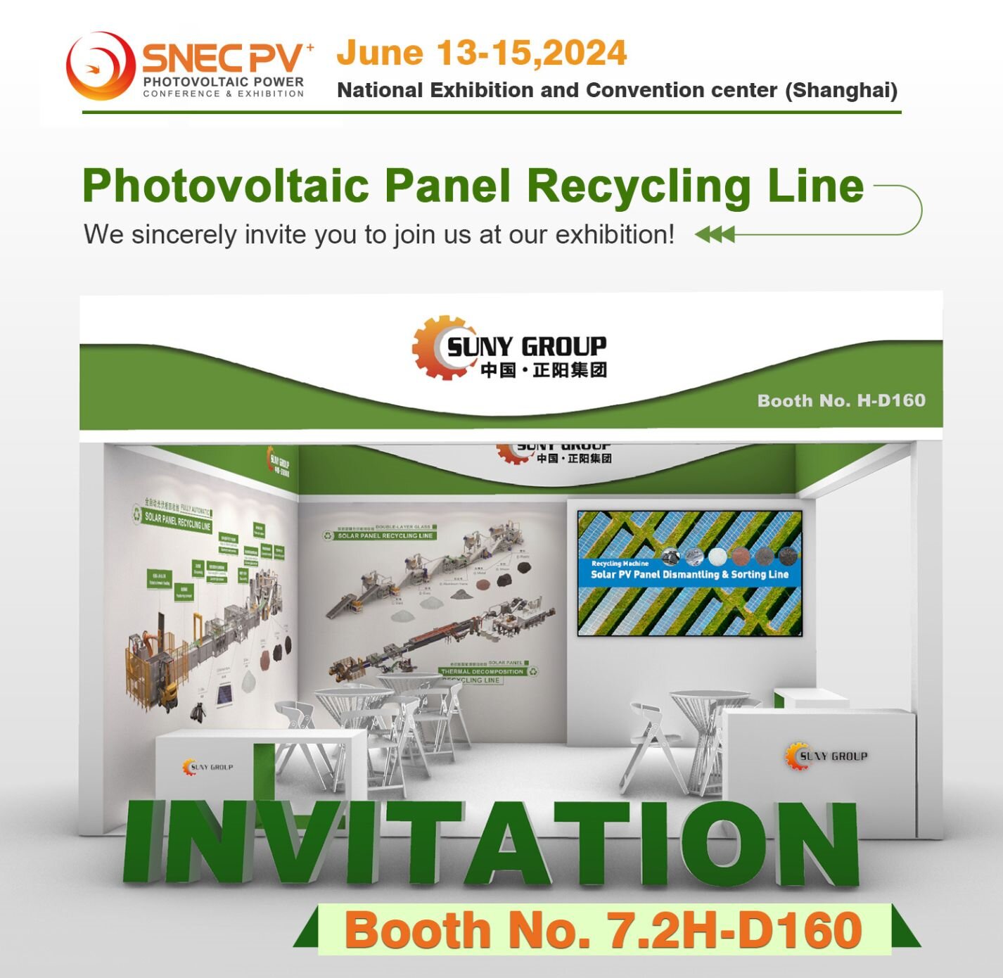 在全球光伏產(chǎn)業(yè)經(jīng)歷了20年的快速發(fā)展之際,“SNEC PV+第十七屆(2024)國際太陽能光伏與智慧能源(上海)大會(huì)暨展覽會(huì)”(簡稱“SNEC PV+ 2024光伏兩會(huì)”)將于2024年6月11日至15日在國家會(huì)展中心上海洲際酒店(上海市諸光路1700號(hào))與國家會(huì)展中心(上海市嵩澤大道333號(hào))隆重舉行。作為光伏行業(yè)的頂級(jí)盛會(huì),本次大會(huì)將為中國和全球光伏業(yè)的未來發(fā)展提供一個(gè)深入研討和交流的平臺(tái)。正陽集團(tuán)(Suny Group)作為一家環(huán)保設(shè)備制造商,將參與這場(chǎng)盛會(huì),共同探討光伏板回收新技術(shù)、新方案、新舉措。期待與您在展會(huì)上交流!