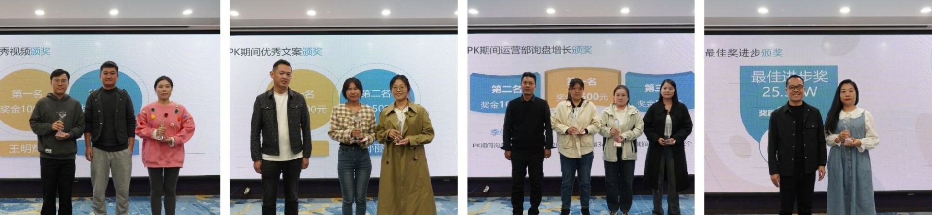 而晚宴的頒獎現場,則是屬于這些優(yōu)秀小伙伴們的榮耀時刻。當燈光聚焦在舞臺上,集團領導們將團隊業(yè)績第一、個人業(yè)績第一、最佳視頻創(chuàng)作、最佳文案創(chuàng)作、最佳貢獻獎等榮譽和獎勵頒發(fā)給每一位當之無愧的獲獎者。那一枚枚獎章、一個個獎杯,不僅僅是物質上的獎勵,更是對他們辛勤付出的認可和贊美。集團領導們滿含深情地感謝每一位小伙伴在這個季度的拼搏,他們?yōu)樾』锇閭兊某砷L感到由衷的欣慰。的確,正陽集團之所以能夠不斷創(chuàng)造新的成績與傳奇,正是因為有這些可愛又努力且優(yōu)秀的小伙伴們在默默付出。